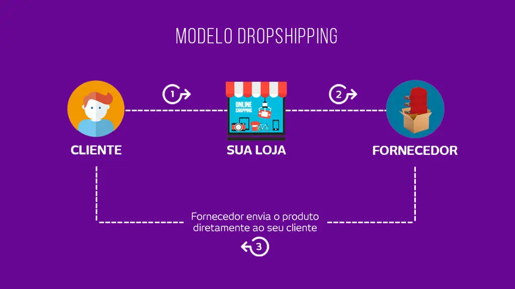 Depois da compra, o dinheiro vai para você por meio da sua loja e, como você não tem estoque, tira o seu lucro e compra o produto com um fornecedor, passando o endereço do cliente. Então, ele recebe o produto em casa.